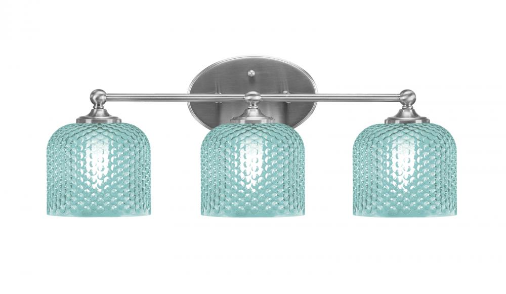 Capri 3 Light Bath Bar Shown In Brushed Nickel Finish With 6 Turquoise Textured Glass