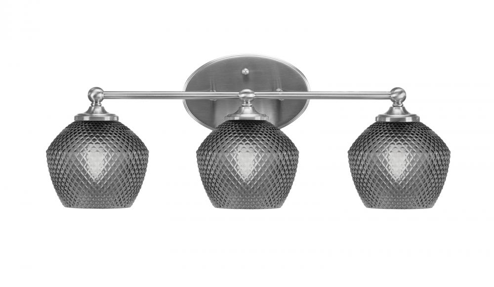 Capri 3 Light Bath Bar Shown In Brushed Nickel Finish With 6 Smoke Textured Glass