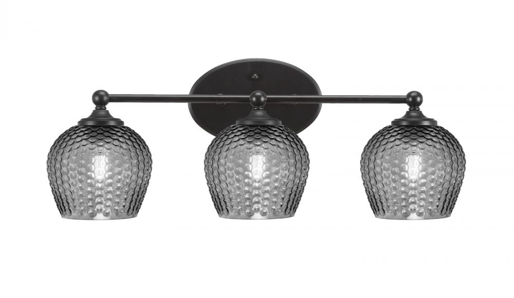 Capri 3 Light Bath Bar Shown In Matte Black Finish With 6 Smoke Textured Glass