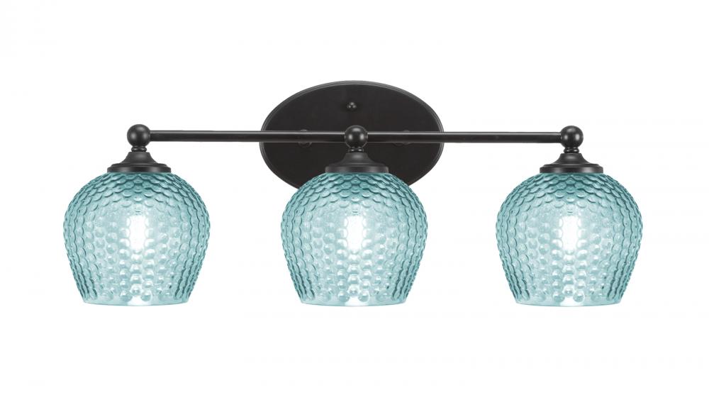 Capri 3 Light Bath Bar Shown In Matte Black Finish With 6 Turquoise Textured Glass