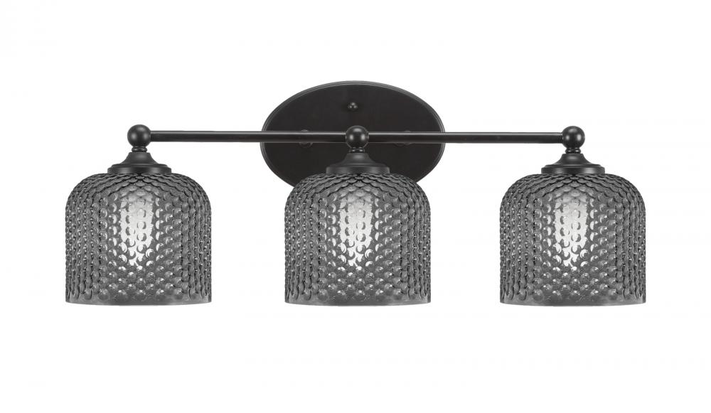 Capri 3 Light Bath Bar Shown In Matte Black Finish With 6 Smoke Textured Glass