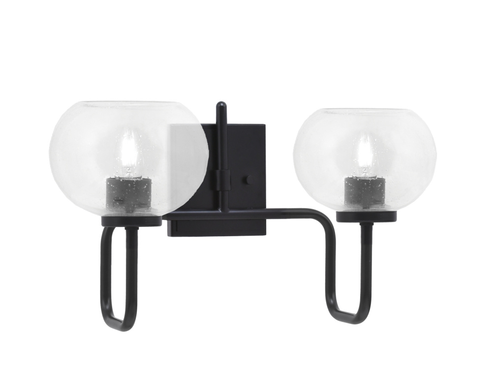 Sandia 2 Light Bath Bar, Matte Black Finish, 7 Clear Bubble Glass