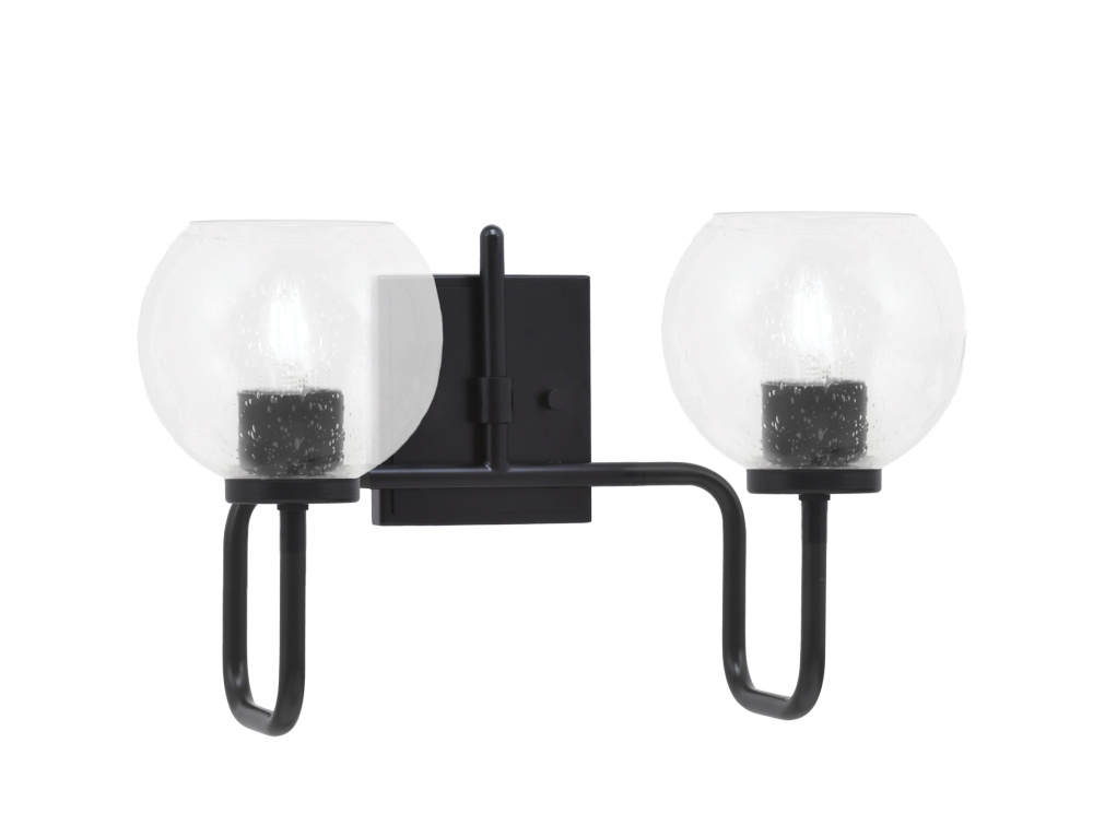 Sandia 2 Light Bath Bar, Matte Black Finish, 5.75 Clear Bubble Glass