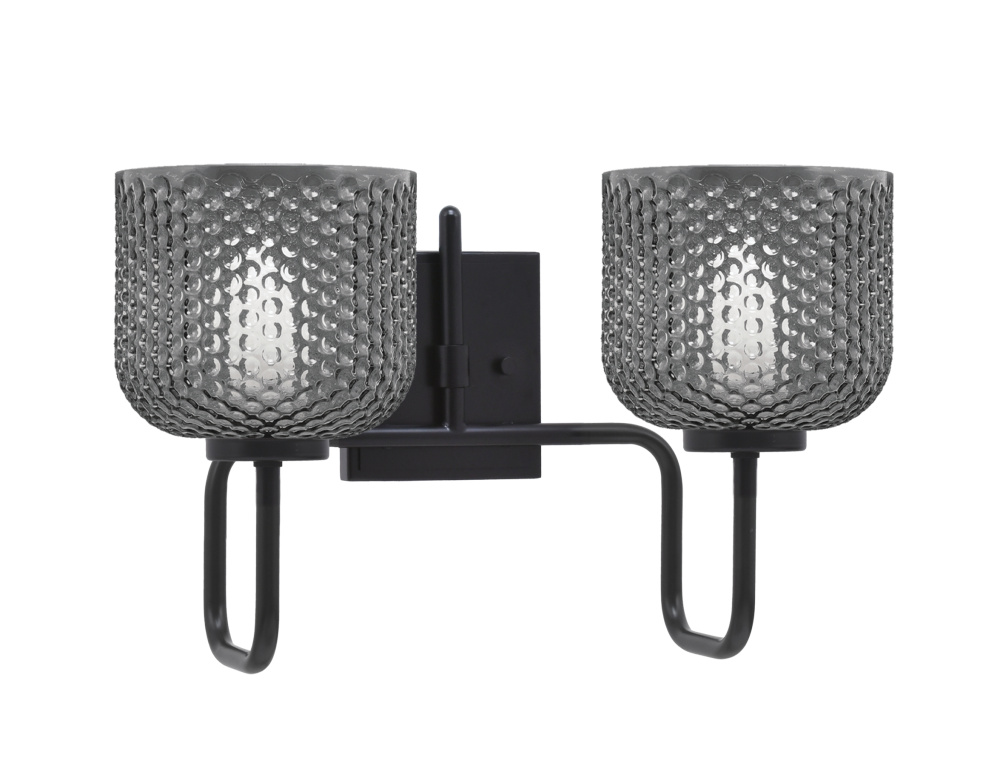 Sandia 2 Light Bath Bar, Matte Black Finish, 6 Smoke Textured Glass