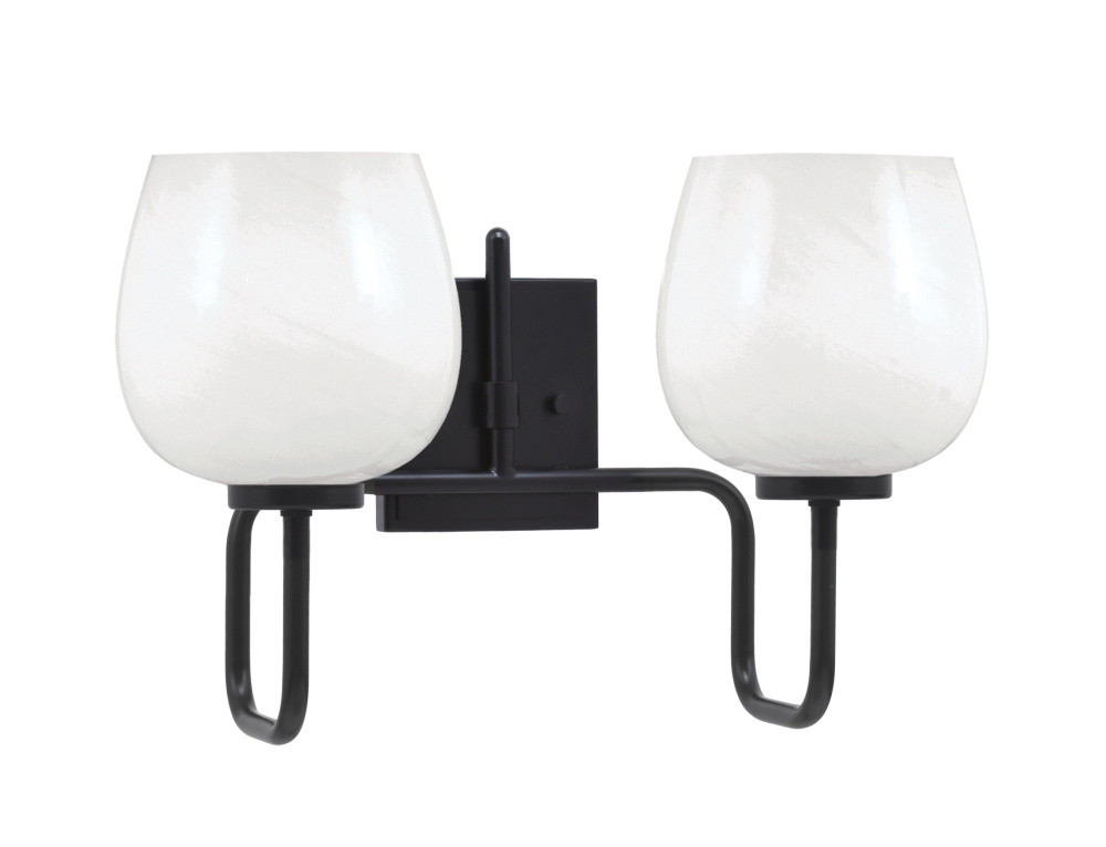 Sandia 2 Light Bath Bar, Matte Black Finish, 6 White Marble Glass