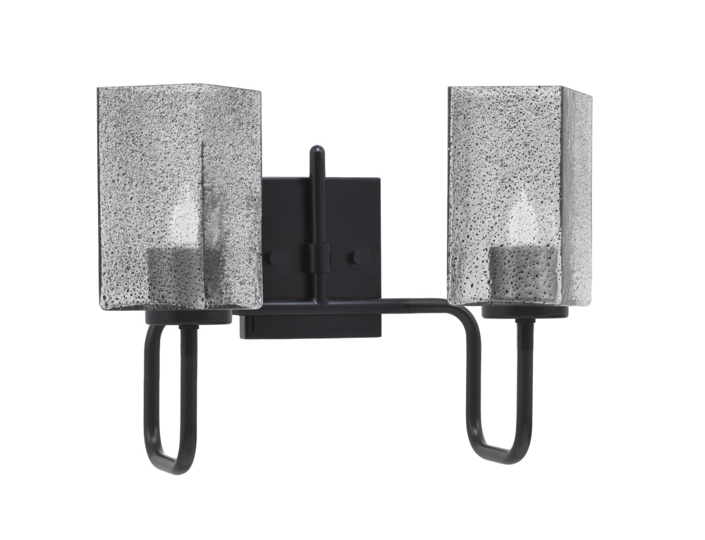 Sandia 2 Light Bath Bar, Matte Black Finish, 3.5 Square Smoke Bubble Glass