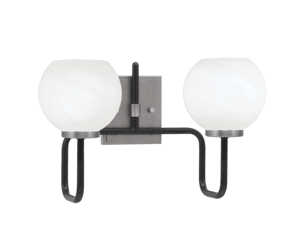 Sandia 2 Light Bath Bar, Matte Black & Graphite Finish, 5.75 White Marble Glass