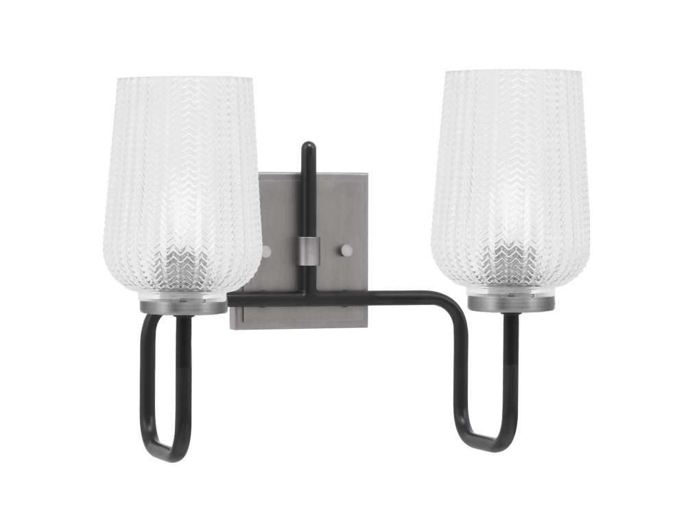 Sandia 2 Light Bath Bar, Matte Black & Graphite Finish, 5 Clear Textured Glass