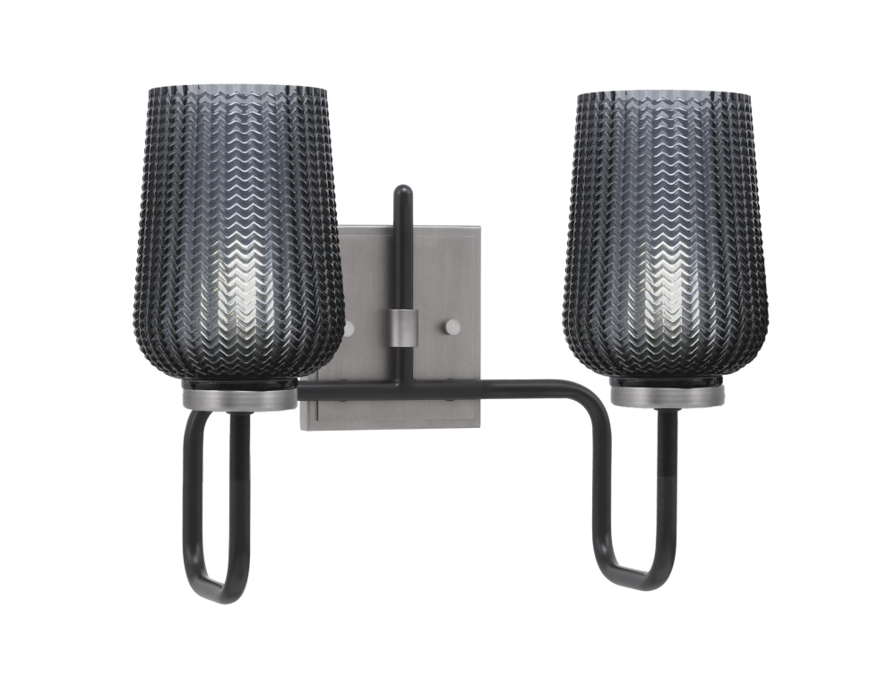 Sandia 2 Light Bath Bar, Matte Black & Graphite Finish, 5 Smoke Textured Glass