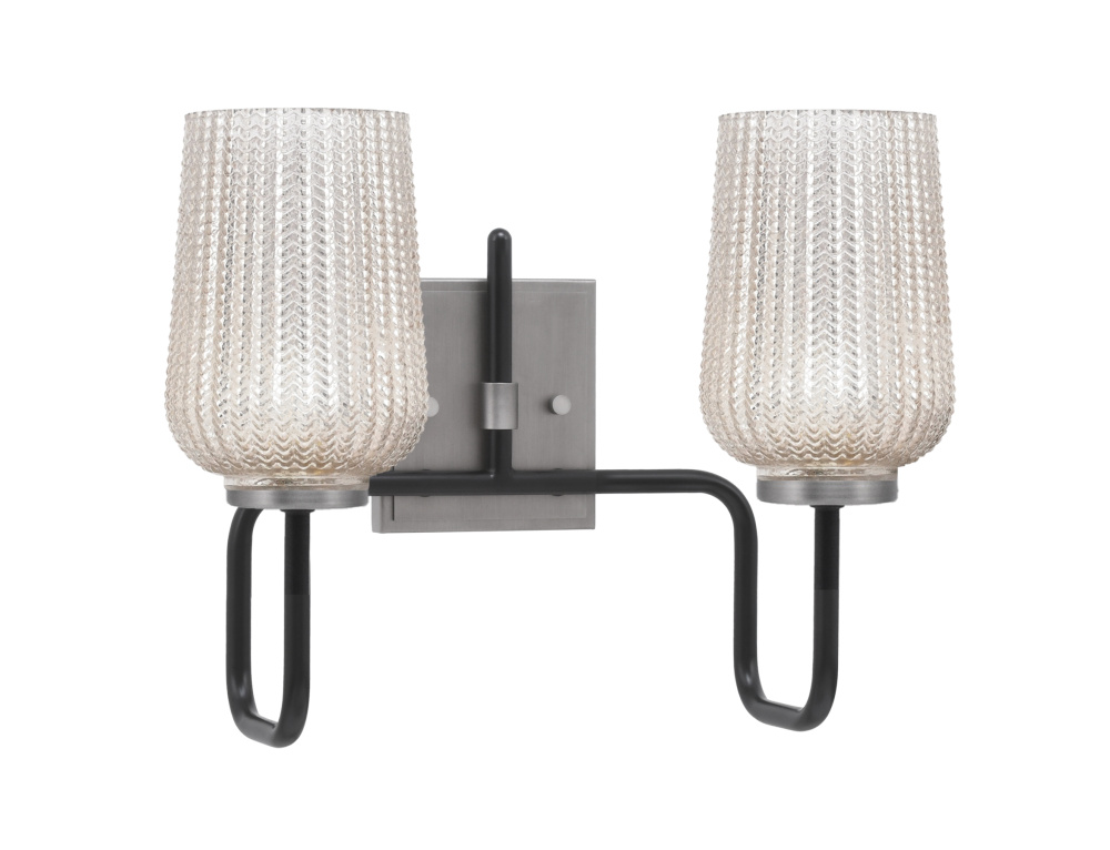 Sandia 2 Light Bath Bar, Matte Black & Graphite Finish, 5 Silver Textured Glass