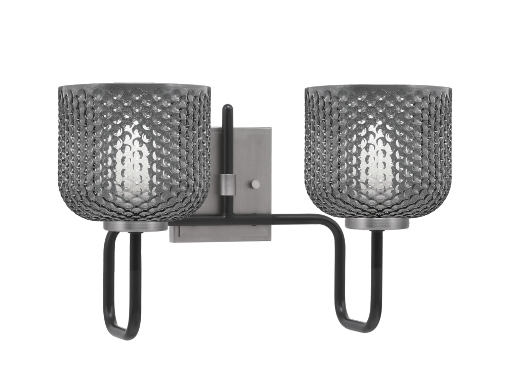 Sandia 2 Light Bath Bar, Matte Black & Graphite Finish, 6 Smoke Textured Glass