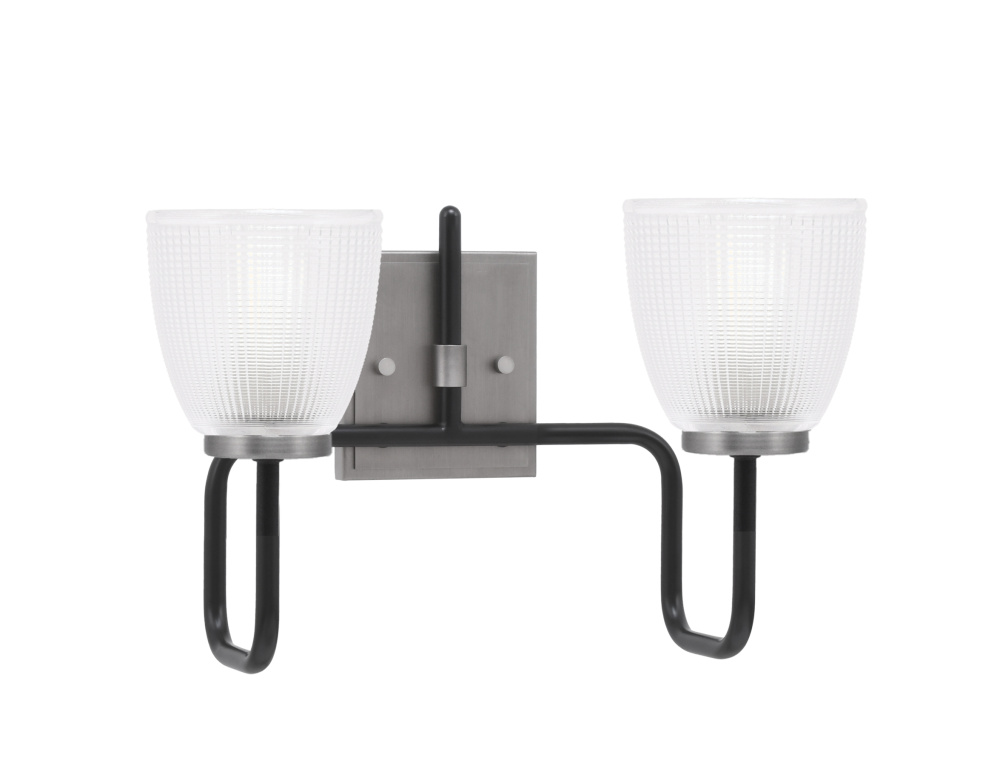 Sandia 2 Light Bath Bar, Matte Black & Graphite Finish, 5 Clear Ribbed Glass