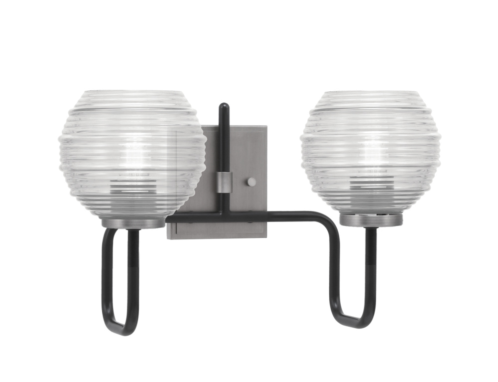 Sandia 2 Light Bath Bar, Matte Black & Graphite Finish, 6 Clear Ribbed Glass