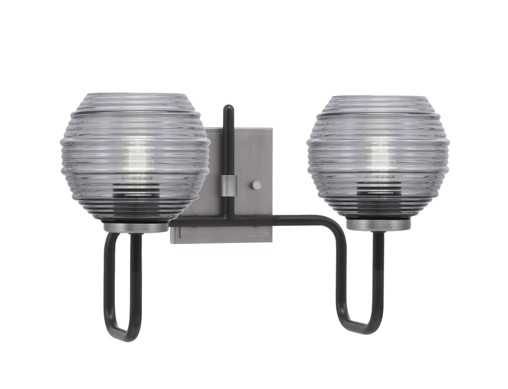 Sandia 2 Light Bath Bar, Matte Black & Graphite Finish, 6 Smoke Ribbed Glass
