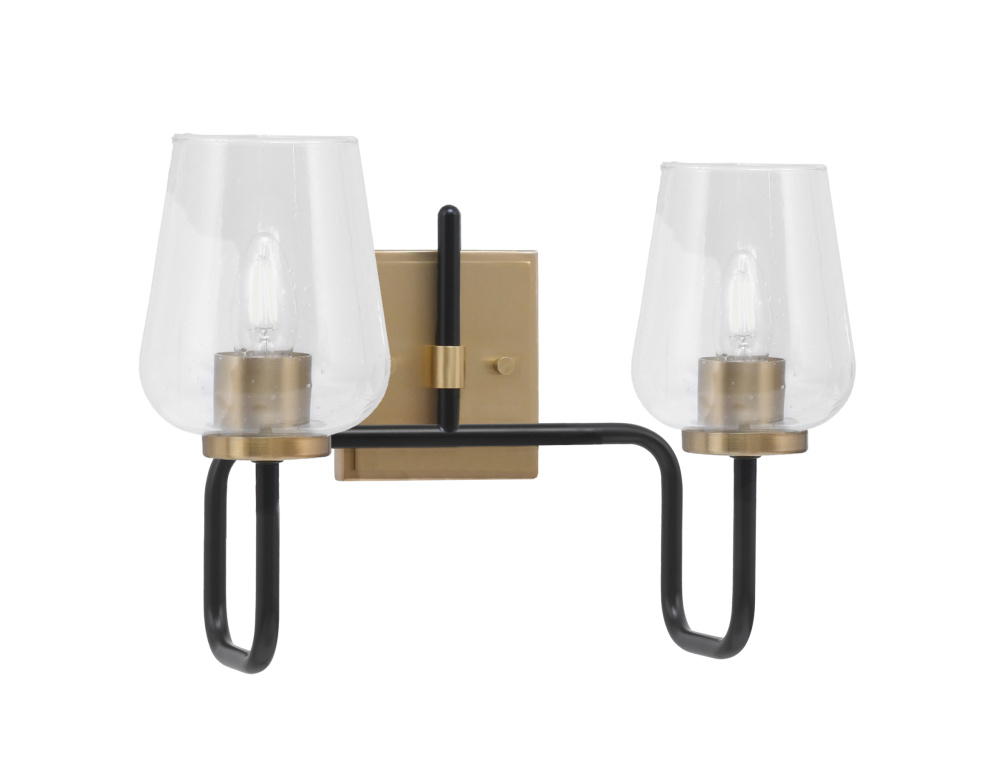 Sandia 2 Light Bath Bar, Matte Black & New Age Brass Finish, 5 Clear Bubble Glass