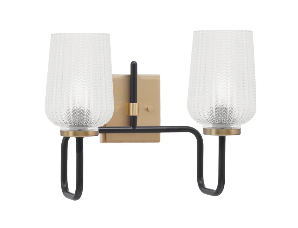 Sandia 2 Light Bath Bar, Matte Black & New Age Brass Finish, 5 Clear Textured Glass