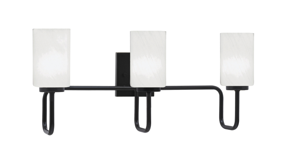 Sandia 3 Light Bath Bar, Matte Black Finish, 4 White Marble Glass
