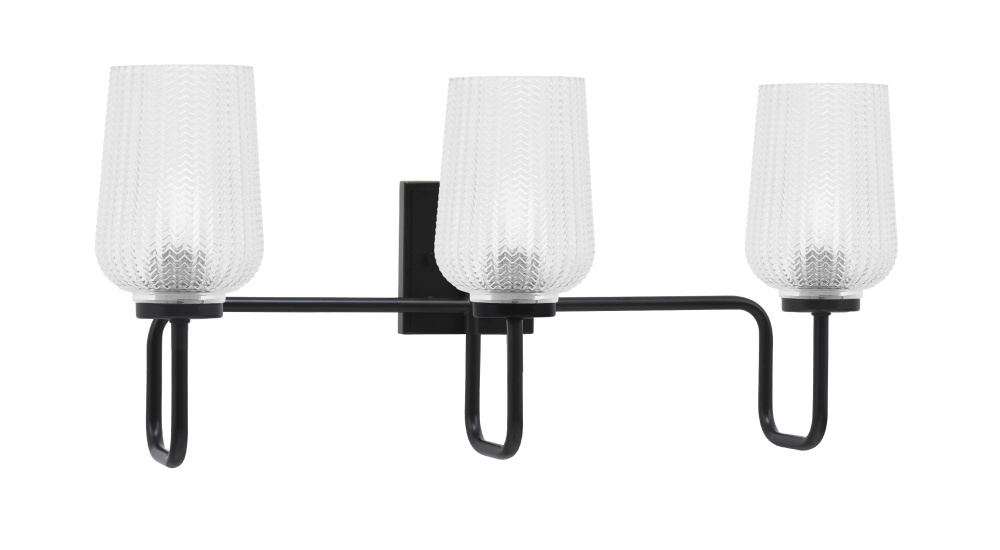 Sandia 3 Light Bath Bar, Matte Black Finish, 5 Clear Textured Glass