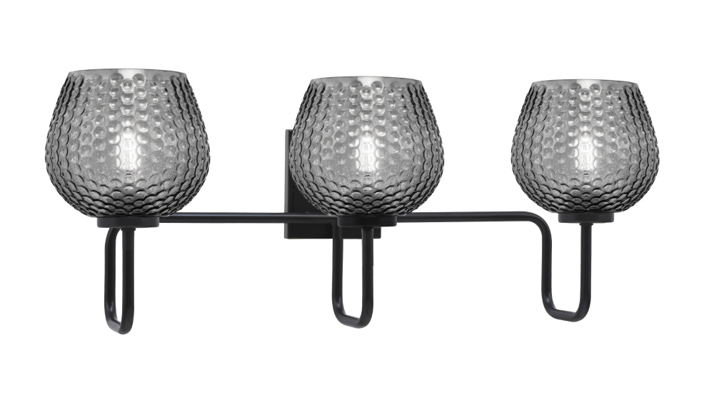 Sandia 3 Light Bath Bar, Matte Black Finish, 6 Smoke Textured Glass