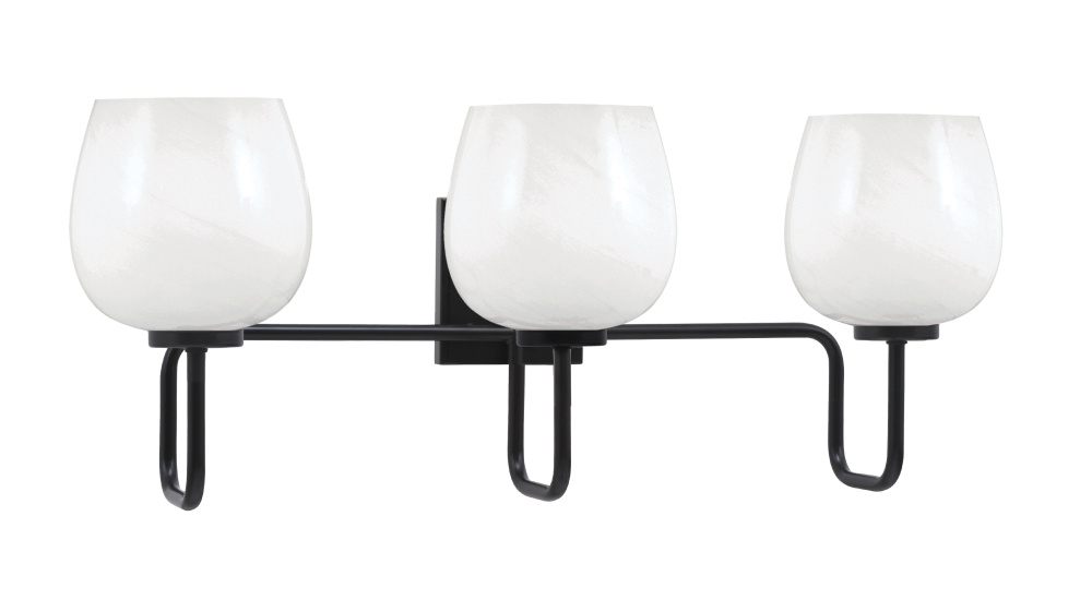 Sandia 3 Light Bath Bar, Matte Black Finish, 6 White Marble Glass