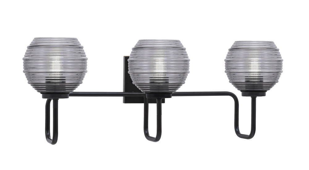 Sandia 3 Light Bath Bar, Matte Black Finish, 6 Smoke Ribbed Glass
