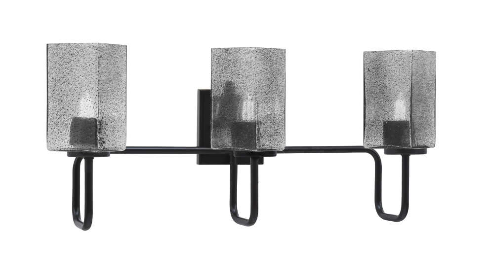 Sandia 3 Light Bath Bar, Matte Black Finish, 3.5 Square Smoke Bubble Glass