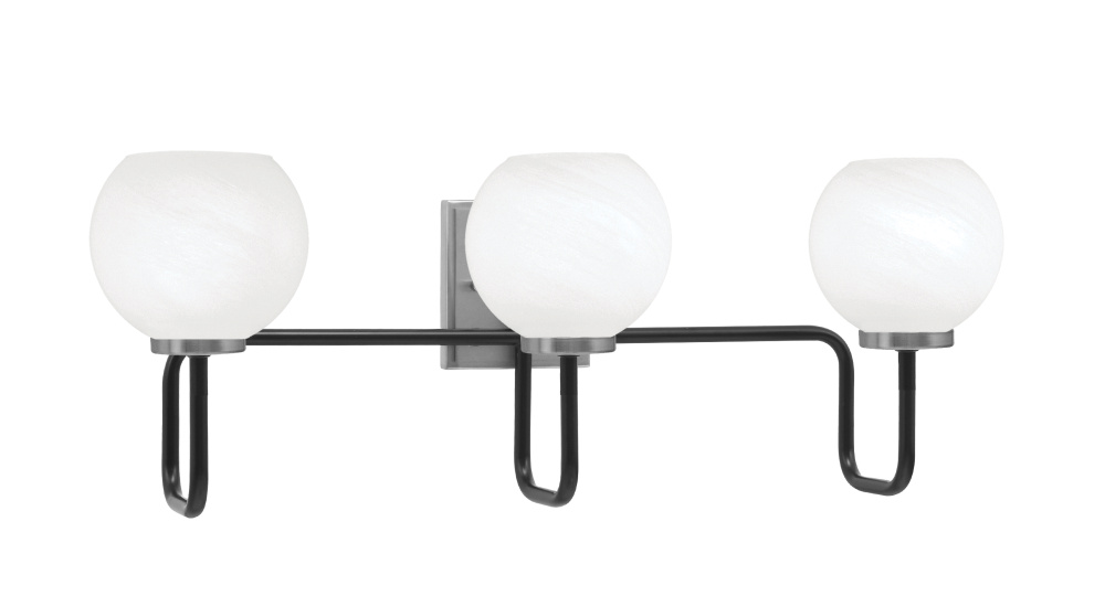 Sandia 3 Light Bath Bar, Matte Black & Graphite Finish, 5.75 White Marble Glass