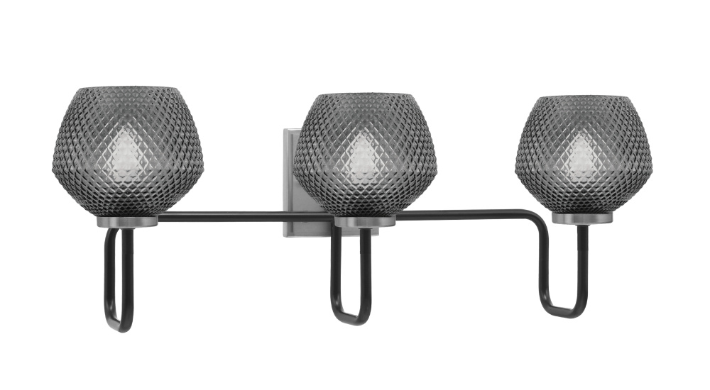 Sandia 3 Light Bath Bar, Matte Black & Graphite Finish, 6 Smoke Textured Glass