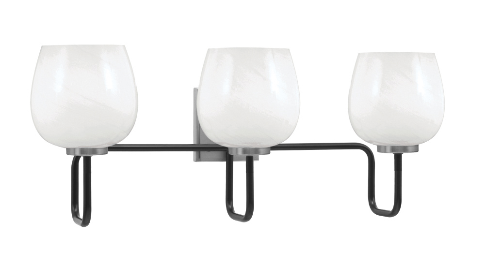 Sandia 3 Light Bath Bar, Matte Black & Graphite Finish, 6 White Marble Glass