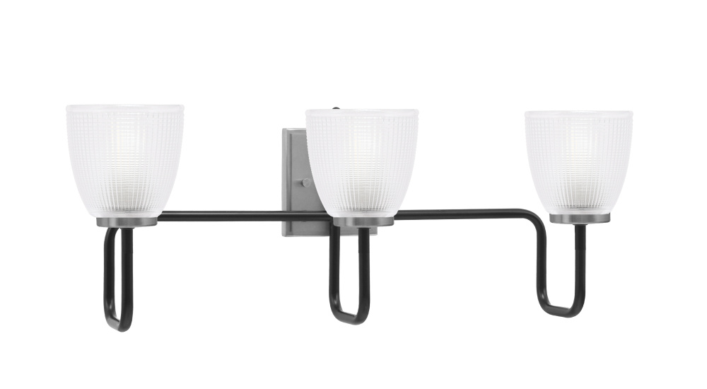 Sandia 3 Light Bath Bar, Matte Black & Graphite Finish, 5 Clear Ribbed Glass