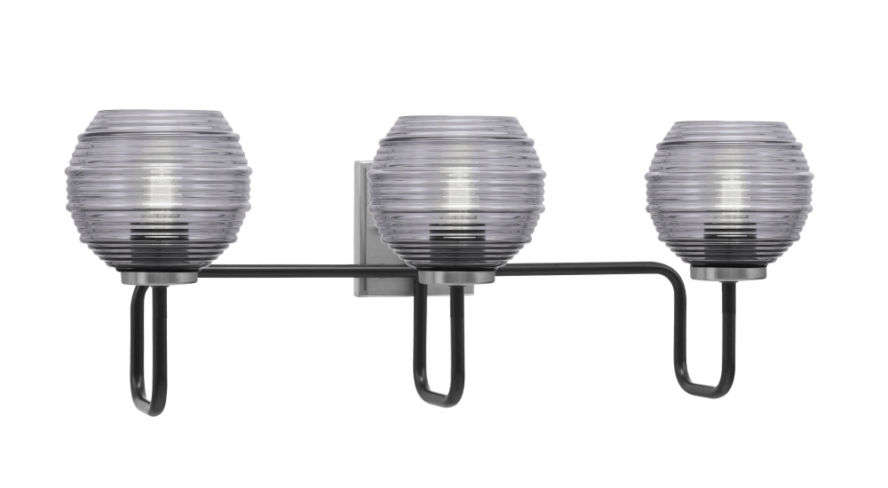 Sandia 3 Light Bath Bar, Matte Black & Graphite Finish, 6 Smoke Ribbed Glass
