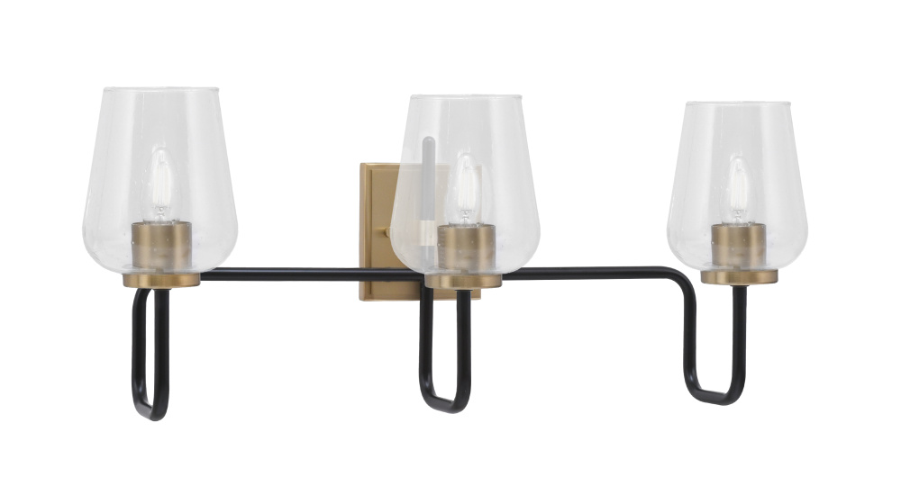 Sandia 3 Light Bath Bar In Matte Black & New Age Brass Finish, 5 Clear Bubble Glass