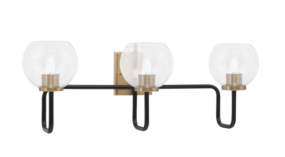Sandia 3 Light Bath Bar In Matte Black & New Age Brass Finish, 5.75 Clear Bubble Glass