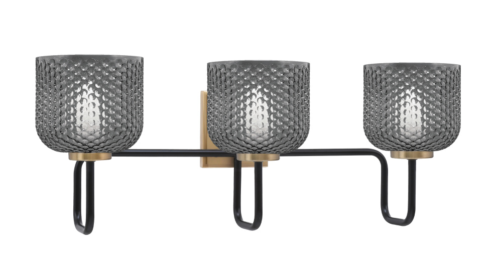 Sandia 3 Light Bath Bar In Matte Black & New Age Brass Finish, 6 Smoke Textured Glass