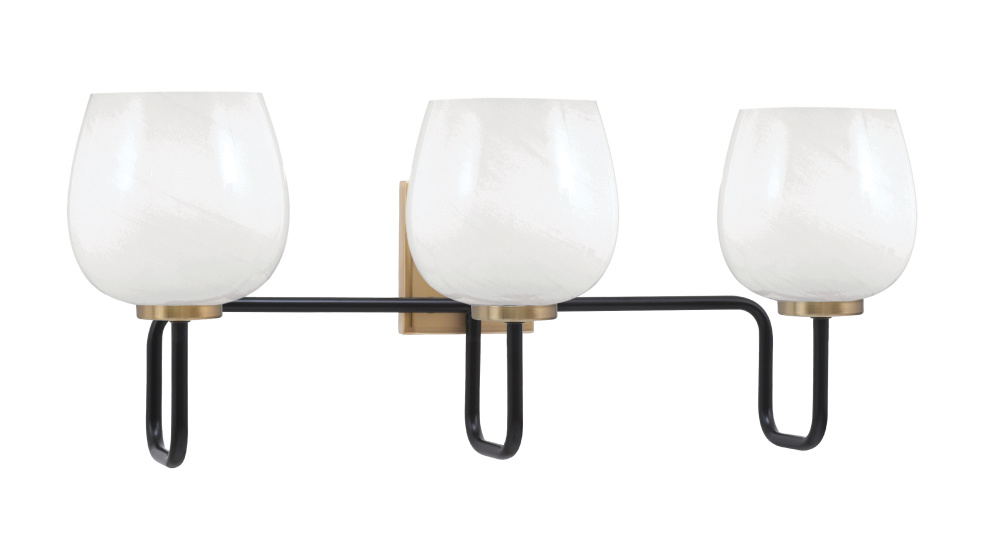 Sandia 3 Light Bath Bar In Matte Black & New Age Brass Finish, 6 White Marble Glass