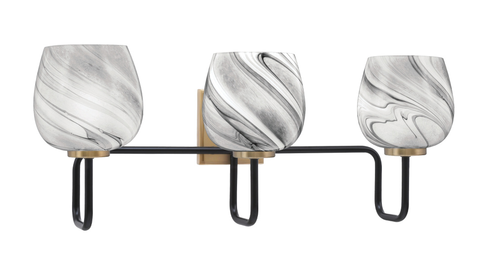Sandia 3 Light Bath Bar In Matte Black & New Age Brass Finish, 6 Onyx Swirl Glass