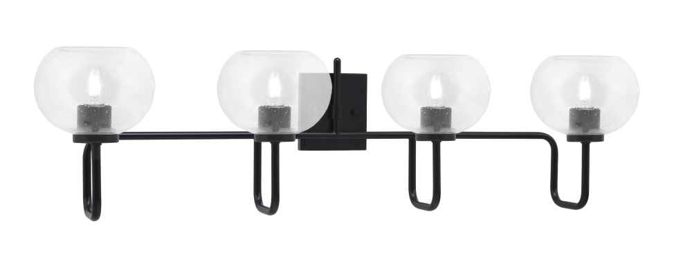 Sandia 4 Light Bath Bar, Matte Black Finish, 7 Clear Bubble Glass