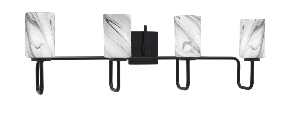 Sandia 4 Light Bath Bar, Matte Black Finish, 4 Onyx Swirl Glass
