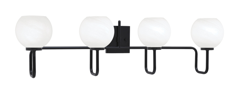 Sandia 4 Light Bath Bar, Matte Black Finish, 5.75 White Marble Glass