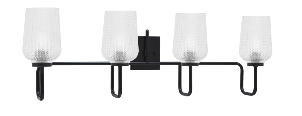 Sandia 4 Light Bath Bar, Matte Black Finish, 5 Clear Textured Glass