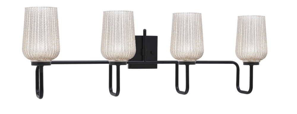 Sandia 4 Light Bath Bar, Matte Black Finish, 5 Silver Textured Glass