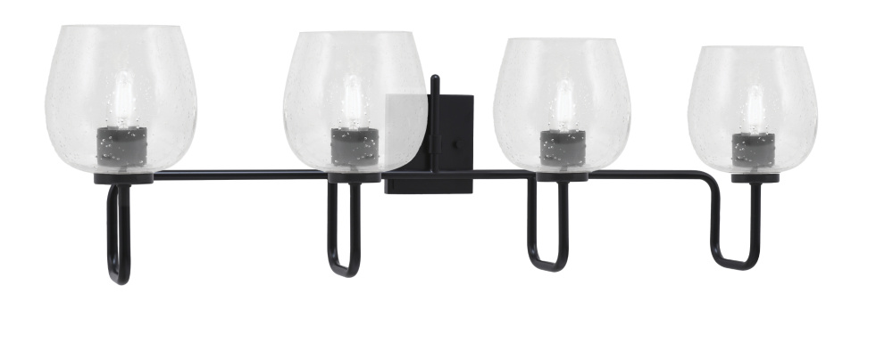 Sandia 4 Light Bath Bar, Matte Black Finish, 6 Clear Bubble Glass