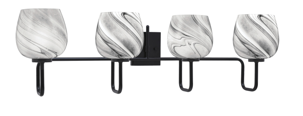 Sandia 4 Light Bath Bar, Matte Black Finish, 6 Onyx Swirl Glass