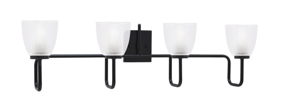 Sandia 4 Light Bath Bar, Matte Black Finish, 5 Clear Ribbed Glass