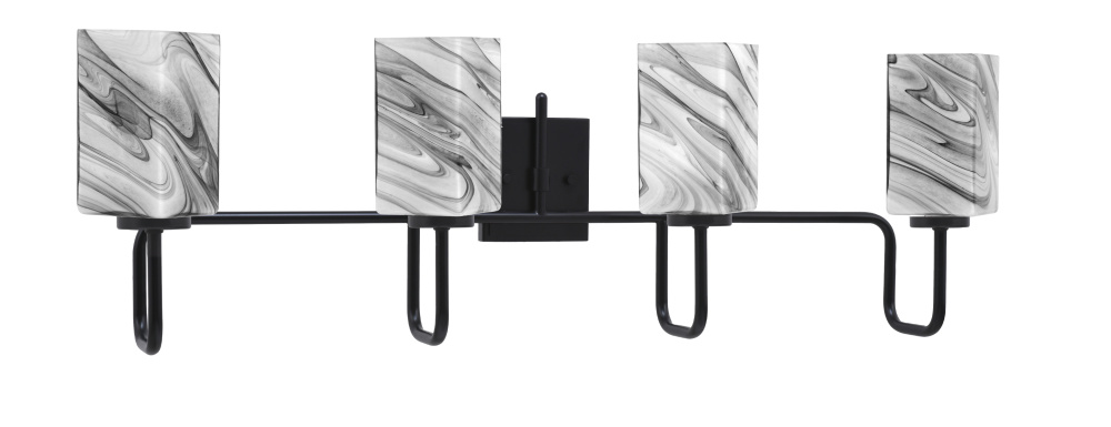 Sandia 4 Light Bath Bar, Matte Black Finish, 3.5 Square Onyx Swirl Glass