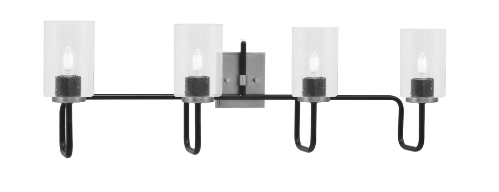 Sandia 4 Light Bath Bar, Matte Black & Graphite Finish, 4 Clear Bubble Glass