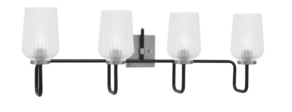Sandia 4 Light Bath Bar, Matte Black & Graphite Finish, 5 Clear Textured Glass
