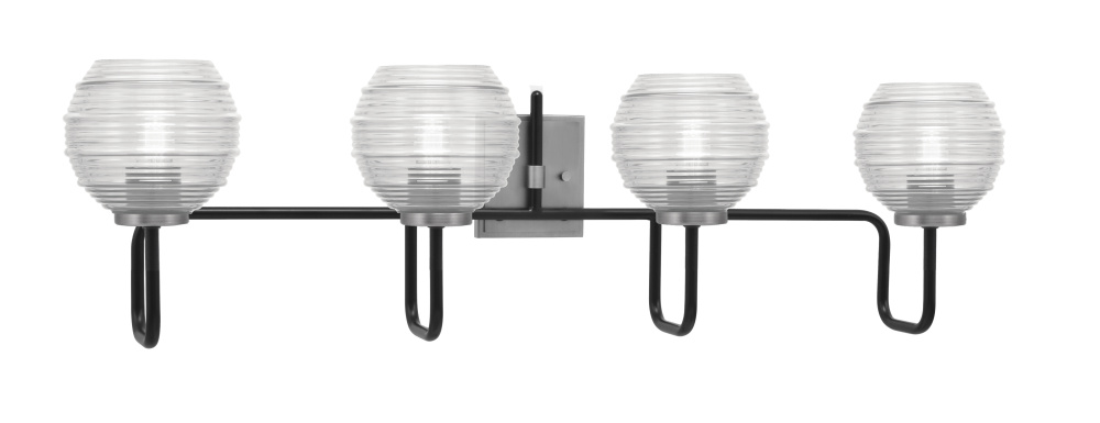 Sandia 4 Light Bath Bar, Matte Black & Graphite Finish, 6Clear Ribbed Glass