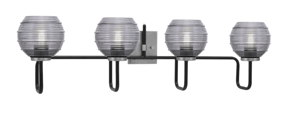 Sandia 4 Light Bath Bar, Matte Black & Graphite Finish, 6Smoke Ribbed Glass