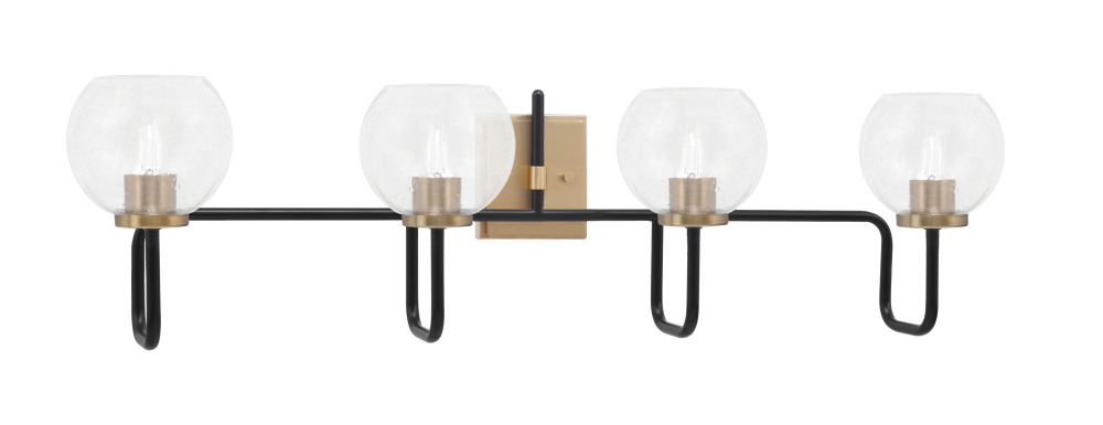 Sandia 4 Light Bath Bar, Matte Black & New Age Brass Finish, 5.75 Clear Bubble Glass